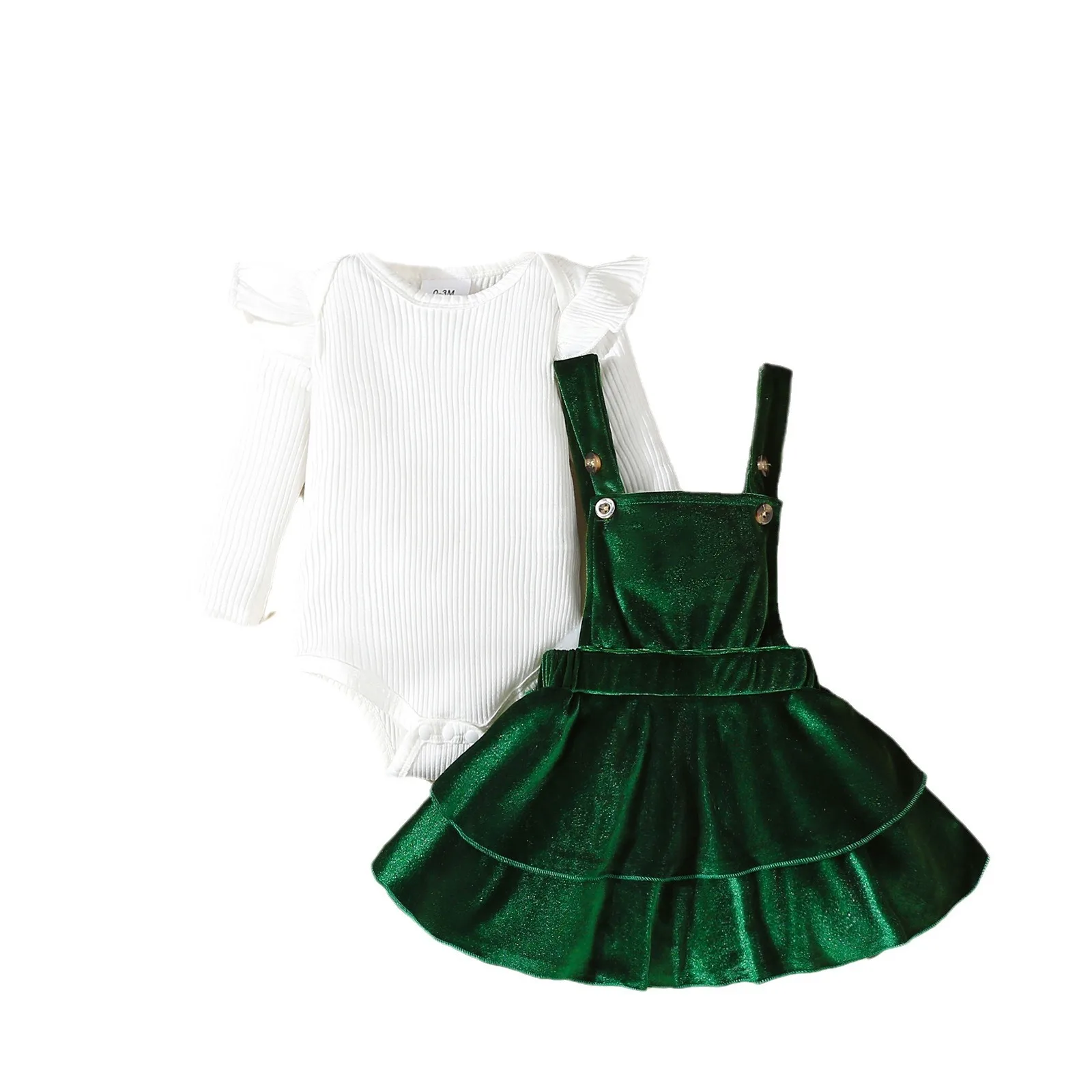 New Baby Girl Christmas Costume Long Sleeved Jumpsuit Jumpsuit+velvet Suspender Skirt+headband Clothing